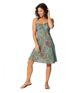 Sukienka w kolorze turkusowo-czerwonym - czysta wiskoza - ramiączka: regulowane - dekolt: V - partia pleców: marszczona - krój: litera A - wzór: orientalny