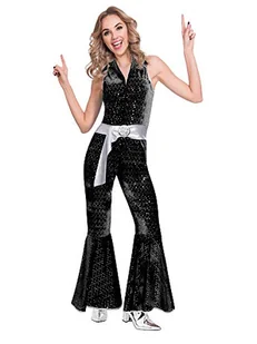 amscan 9905740 Dorosły damski czarny kombinezon dyskotekowy fantazyjny strój retro strój (sukienka 38-45)