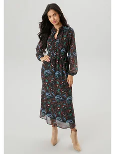 Długa sukienka wiązana w pasie Fiance Czarno-turkusowa UNI