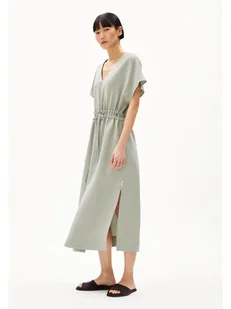 Sukienka "Maaholina" w kolorze miętowym - z dodatkiem lnu - dekolt: V - talia: ściągacz tunelowy - dolny brzeg: z rozcięciem - krój: luźny - look: jednokolorowy - zrównoważony rozwój: