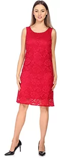 Bellivalini Damski Sukienka do kolan koronkowa sukienka świąteczna letnia sukienka bez rękawów Okrągły dekolt w różany wzór BLV50-260 (Malina, XXL)