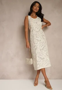 Beżowa Szydełkowa Sukienka z Bawełny w Stylu Boho Baniretia