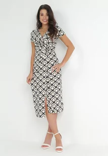 Beżowa Sukienka Kopertowa z Ozdobnym Węzłem Belba