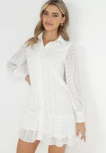 Biała Koszulowa Sukienka z Metaliczną Nitką Shenemi
