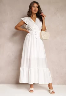 Biała Rozkloszowana Sukienka Maxi z Gumką w Talii Lavla