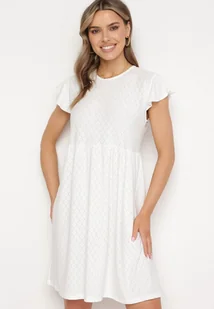 Biała Sukienka Rozkloszowana z Wiązaniem na Plecach o Ażurowym Wykończeniu Floranella