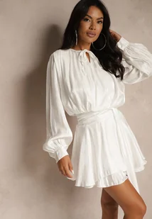 Biała Wiskozowa Sukienka Ozdobiona Wiązaniem i Falbanką Rallio