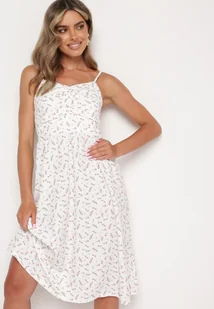 Biało-Różowa Rozkloszowana Sukienka w Drobne Kwiaty na Cienkich Ramiączkach Reteri