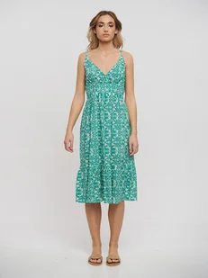 aleva Damska sukienka midi z nadrukiem batikowym 19323234-AL04, turkusowa, M, turkusowy, M