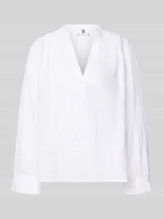 bluzka lniana damska od Tommy Hilfiger;efekt: jednolity kolor;Dopasowanie: krój relaxed fit;kształt kołnierza: tunika;aplikacja: detal z logo;Detale: