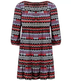 Tunika w etniczny nadruk Rękaw 3/4 z gumką Odcinana pod linią biustu z rozkloszowanym dołem Model doskonalone maskuje brzuch