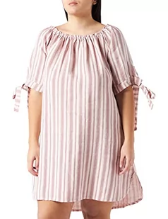 Bonamaison Damska krótka sukienka w paski, z kołnierzem w łódkę i wiązanymi rękawami do połowy rękawów, różowy, 36