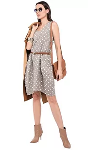 Bonateks damska sukienka 100% lniana Made in Italy, okrągły dekolt z kieszeniami i nadrukiem w kropki, szarobrązowa, rozmiar: S, Szarobrązowy, S