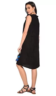 Bonateks damska sukienka 100% lniana Made in Italy, sukienka o średniej długości z okrągłym dekoltem i odkrytymi ramionami, szarobrązowa, Rozmiar: S, Szarobrązowy, S