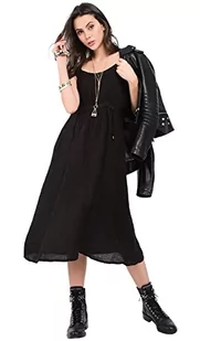 Bonateks damska sukienka 100% lniana wyprodukowana we Włoszech, długa sukienka z koronką z przodu i kieszeniami, czarna, rozmiar: S, czarny, S