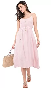 Bonateks damska sukienka 100% lniana wyprodukowana we Włoszech, długa sukienka z koronką z przodu i kieszeniami, różowa, rozmiar: M, Różowy, M