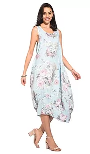 Bonateks damska sukienka 100% lniana wyprodukowana we Włoszech, krótka sukienka w płynie z przodu i bez rękawów, biała, rozmiar: M, biały, M