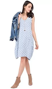 Bonateks damska sukienka 100% lniana wyprodukowana we Włoszech, okrągły dekolt z kieszeniami i nadrukiem w kropki, niebo, rozmiar: XL, Niebo, XL