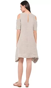 Bonateks damska sukienka 100% lniana wyprodukowana we Włoszech, puszysta sukienka z okrągłym dekoltem i kieszeniami, biała, rozmiar: S, biały, S
