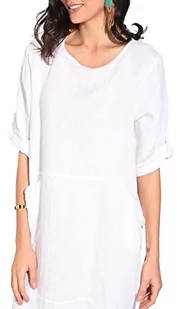 Bonateks damska sukienka 100% lniana wyprodukowana we Włoszech, sukienka z ramiączkami i rozpinaniem z tyłu, biała, rozmiar: S, biały, S