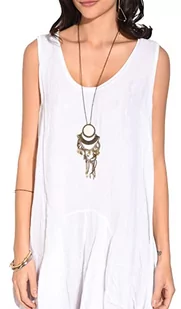Bonateks damska sukienka tunika 100% lniana wyprodukowana we Włoszech, tunika z okrągłym dekoltem, wielowarstwowa, biała, rozmiar: XL, biały, XL
