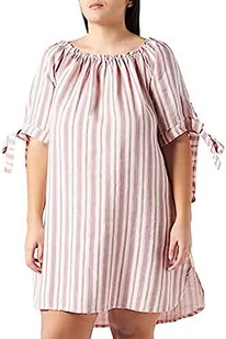 Bonateks, Krótka sukienka w paski z kołnierzem na łódkę i wiązanymi rękawami, 100% len, rozmiar DE:36 rozmiar US: S, różowa - wyprodukowano we Włoszech, Rosa, 36