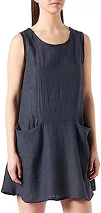 Bonateks, Krótka sukienka z zawiniętym okrągłym kołnierzem i kieszeniami, 100% len, rozmiar DE:42 rozmiar US: XL, granatowy - wyprodukowano we Włoszech, niebieski, 42