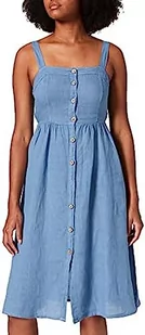 Bonateks, Sukienka z paskiem z przodu z guzikami, 100% len, rozmiar DE: 38 rozmiar US: L, niebieskie dżinsy - wyprodukowano we Włoszech, niebieski, 38