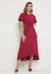Bordowa Rozkloszowana Sukienka Ozdobiona Marszczeniem Odallica