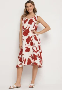 Bordowa Sukienka z Wiskozy z Wzorem w Kwiaty Bez Rękawów Orrulene