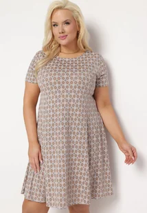 Brązowo-Beżowa Rozkloszowana Sukienka Mini z Elastycznej Wiskozy Annamarie