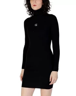 Calvin Klein Jeans Damska sukienka swetrowa z zawijanym dekoltem, Czarny, XS
