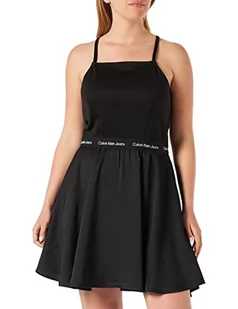 Calvin Klein Jeans Damskie paski z logo tkanina mieszana sukienka codzienna, czarna, XL