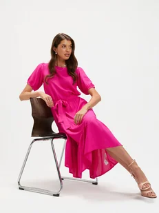 Ta casualowa sukienka z wiązaniem w talii to doskonała propozycja dla kobiet ceniących sobie swobodę i styl. Utrzymana w subtelnym różowym kolorze, dodaje uroku i kobiecości każdej stylizacji. Wykonana w 100% z wiskozy, co zapewnia komfort noszenia i przewiewność przez cały dzień. To doskonały wybór na co dzień, który nie tylko podkreśli Twoją sylwetkę, lecz także zapewni wygodę i styl. Modelka ma 178 cm.