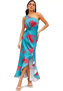 Chi Chi London Damska sukienka midi na jedno ramię z kwiatowym nadrukiem w kolorze turkusowym, Niebieskozielony, 34