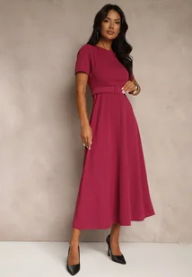 Ciemnoróżowa Sukienka o Rozkloszowanym Kroju z Ozdobnym Paskiem Desiliena