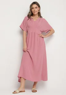 Ciemnoróżowa Sukienka z Bawełną i Górą w Stylu Nietoperza Filenia