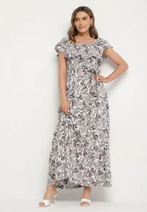 Ciemnoszara Sukienka Hiszpanka z Bawełną w Kwiaty Mreova