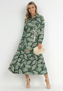 Ciemnozielona Sukienka Koszulowa w Kwiaty Zari