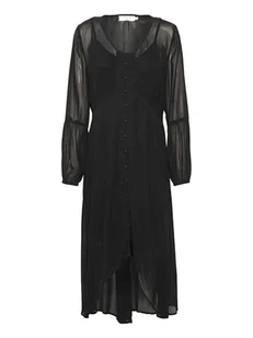Sukienka w kolorze czarnym - dekolt: okrągły - zapięcie: listwa guzikowa - zakończenie rękawów: elastyczne - dolny brzeg: asymetryczny - krój: prosty - look: jednokolorowy - wykończenie: delikatnie prześwitujące