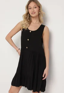 Czarna Bawełniana Sukienka o Rozkloszowanym Kroju Zdobiona Guzikami Iffa