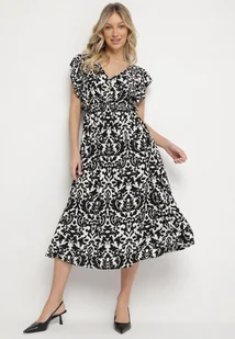 Czarna Bawełniana Sukienka Rozkloszowana z Falbankami w Ornamentalny Wzór Zaliette