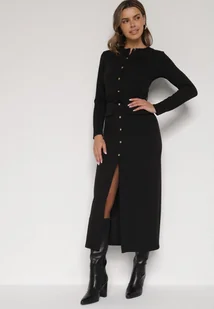 Czarna Sukienka Koszulowa z Wiskozą Guzikami i Paskiem Vetienne