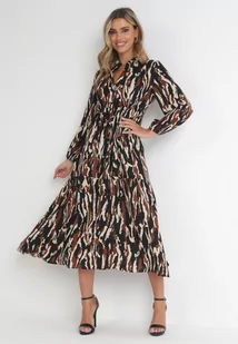 Czarna Sukienka Rozkloszowana w Abstrakcyjny Wzór Gove