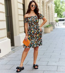 Czarna sukienka w kolorowe kwiaty Roxia - Gemre