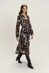 Czarna sukienka z kolorowym nadrukiem w liście - Greenpoint