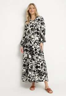 Czarna Sukienka z Wiskozy o Pudełkowym Kroju w Kwiatowy Wzór Ridiana