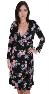 Śliczna, lekka i zwiewna sukienka midi w klasycznym, ale jednocześnie eleganckim stylu. Dekolt w serek z ozdobnymi falbankami, po boku wiązanie. Wykonana z m...