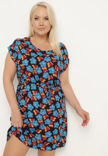 Czarno-Niebieska Pudełkowa Sukienka z Wiskozy Wiązana Sznurkiem w Talii Tiamadine