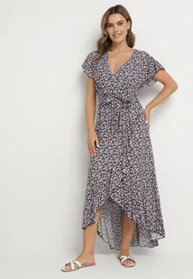 Czarno-Różowa Bawełniana Sukienka z Gumką w Talii i Asymetrycznym Dołem Orrizae